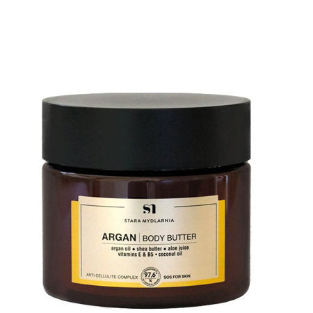 Nourishing body butter enriched with precious argan oil formulated for dry, dull and sagging skin. The formula contains the anti-cellulite complex, active vitamins B5 & E, aloe juice, shea butter, argan and coconut oils. Limits epidermal water loss. Herbal extracts support the fight against cellulite and improve the skin’s microcirculation.