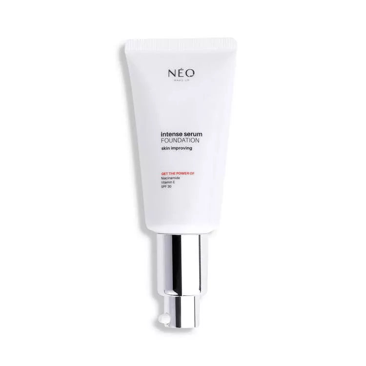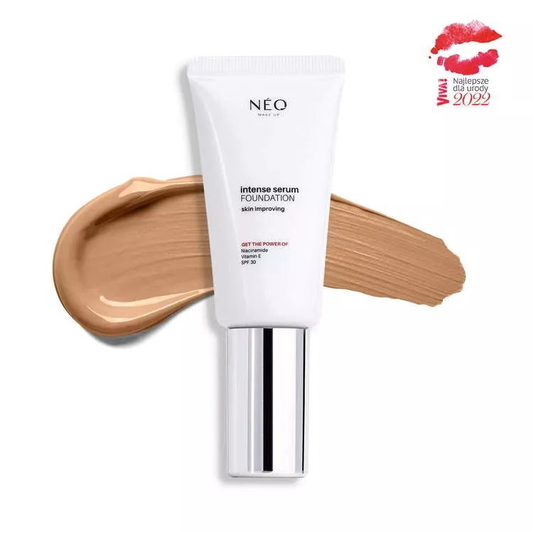 Intense Serum Foundation has a strong care effect. Formula contain niacinamide, which visibly reduces discoloration, brightens, moisturizes the skin and evens out the color. Soft texture of the foundation gives a luminous finish to the make-up for all skin types, while covering all imperfections. Provides medium to high coverage.