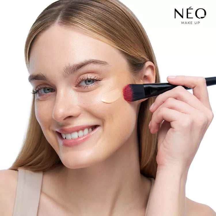 How to apply foundation to your face? Apply it to cleansed skin using a sponge or brush for foundation NEO MAKE UP 01 or 02.